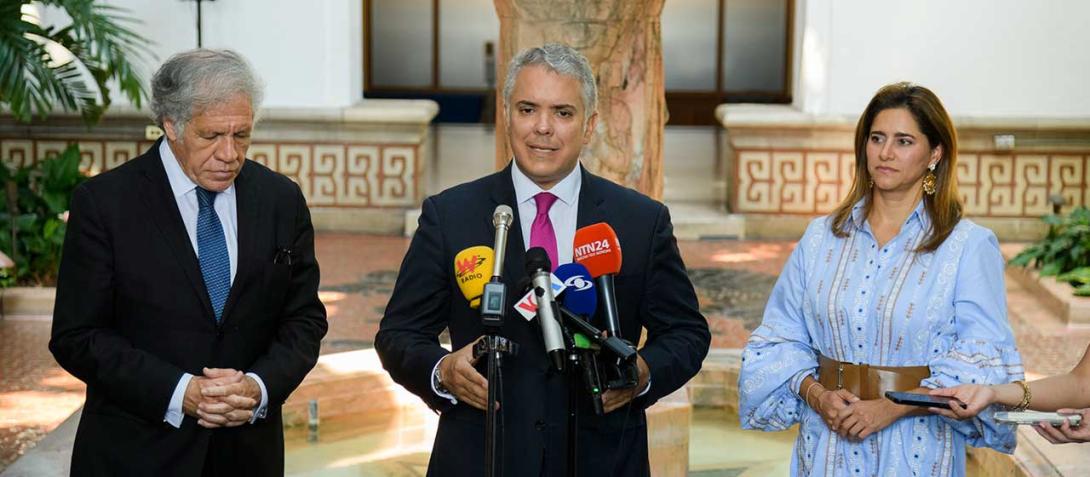 Así lo anunció este jueves el Presidente, Iván Duque, luego de la reunión que sostuvo con el Secretario General de la Organización de Estados Americanos (OEA), Luis Almagro, en el marco de la agenda de trabajo que adelanta en Estados Unidos.