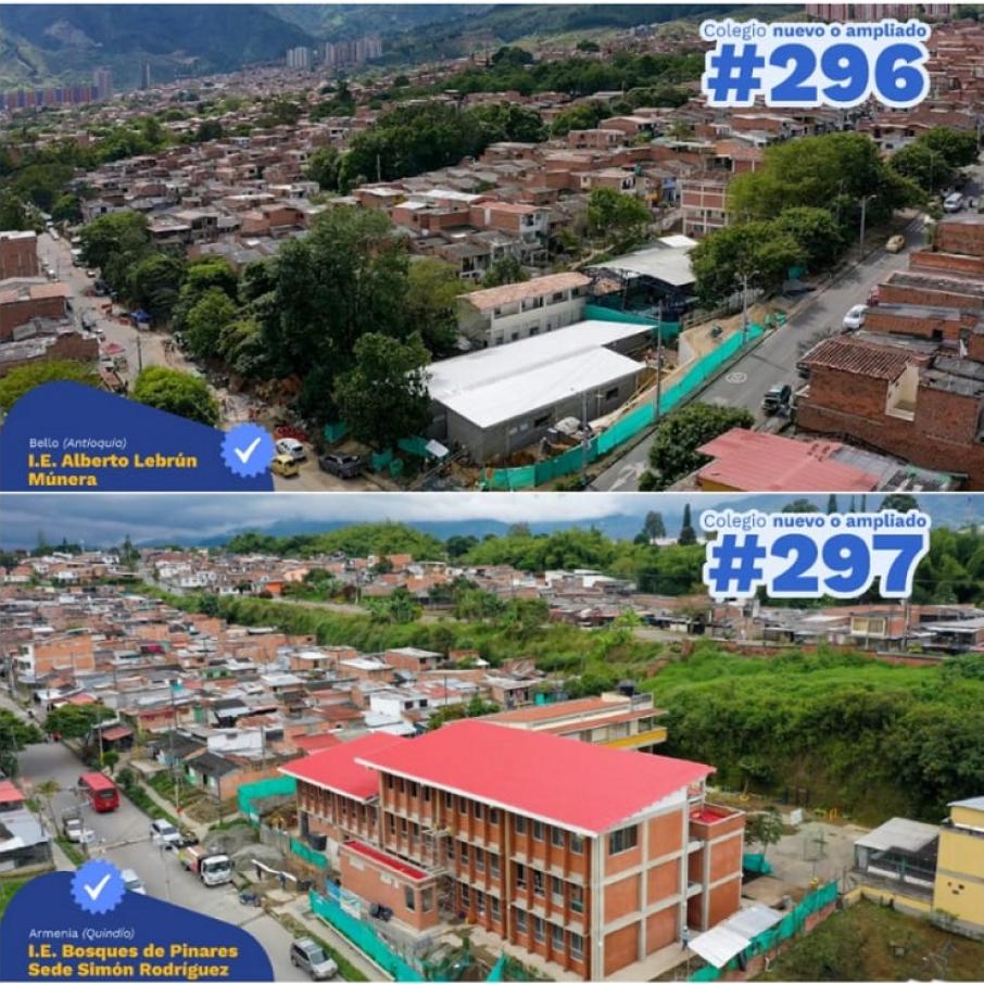 Cabe resaltar que, en las últimas semanas estos colegios han sido entregados por el Ministerio de Educación y el Fondo de Financiamiento de la Infraestructura Educativa - FFIE, enmarcado en la estrategia 'Entregatón de colegios', que a la fecha han entregado 297 colegios en diferentes sectores del territorio nacional.