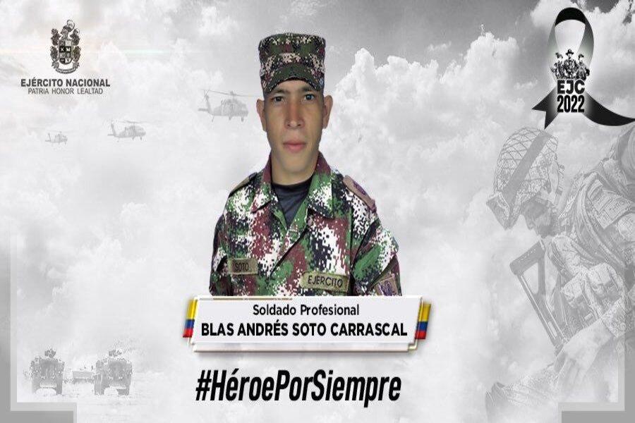 De acuerdo con el informe entregado por las autoridades, el soldado asesinado fue identificado como Blas Andrés Soto Carrascal, momento en que el Ejército se encontraba realizando operativos en la vereda El Limón, zona rural de la municipalidad mencionada.