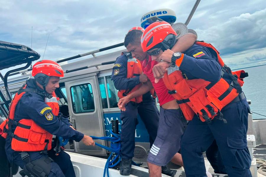 Los hombres fueron auxiliados y trasladados junto a la embarcación a puerto seguro en Coveñas, donde recibieron alimentación e hidratación, así como valoración médica.