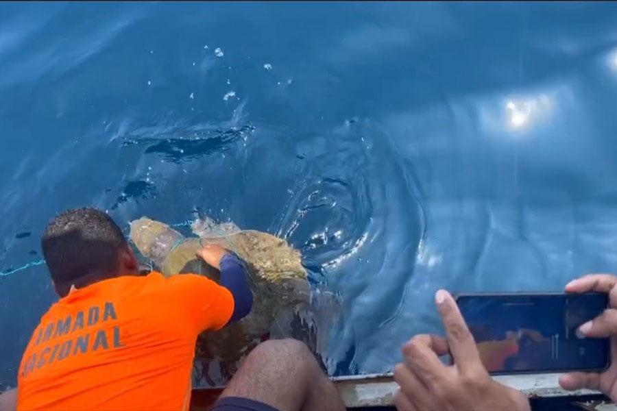 Una unidad de la Armada de Colombia que se encontraba realizando operaciones de control marítimo, rescató y liberó una tortuga marina enredada a una red de pesca artesanal cerca al área general de Isla Gorgona, en el Pacífico colombiano.