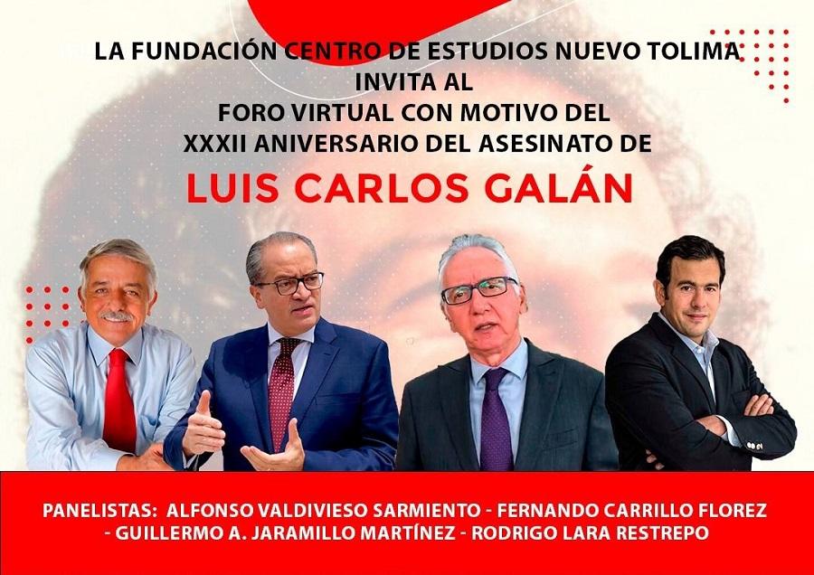 El exfiscal Alfonso Valvidieso Sarmiento, el exprocuador Fernando Carrillo, el exalcalde de Ibagué Guillermo Alfonso Jaramillo y el exsenador Rodrigo Lara Restrepo son los panelistas que invitó el dirigente Emilio Martínez Rosales al foro virtual con el que se conmemoran este miércoles a las cinco de la tarde los 32 años del magnicidio del líder del Nuevo Liberalismo Luis Carlos Galán Sarmiento.
