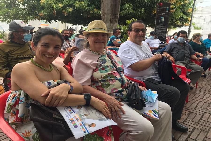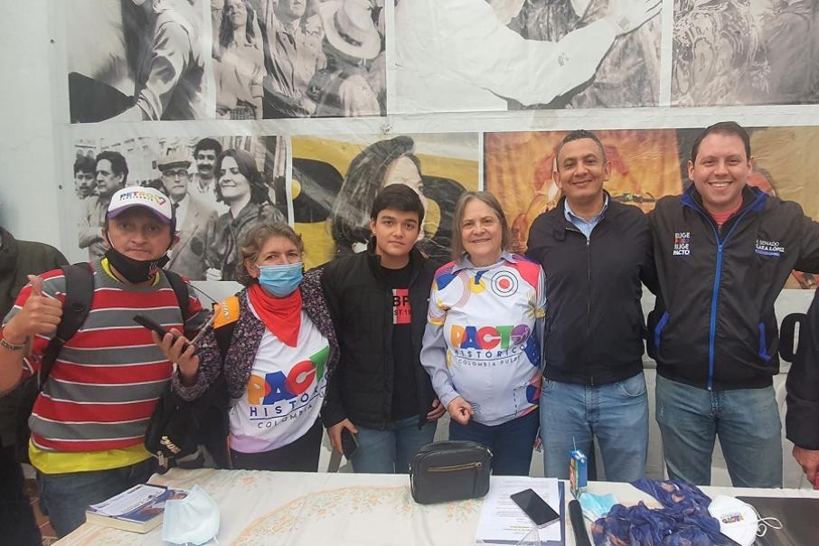 Clara López estaba acompañada por la candidata a la Cámara de Representantes, Martha Alfonso, el diputado Renzo García, el dirigente Jairo Rivera Morales y algunos gestores culturales.