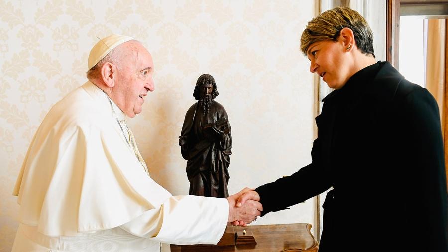 La señora Verónica Alcocer le agradeció al Papa Francisco su amable acogida, y le transmitió la invitación de visitar a Colombia, por parte del Presidente de la República, Gustavo Petro, en este momento tan crucial que está atravesando el país hacia la Paz Total.