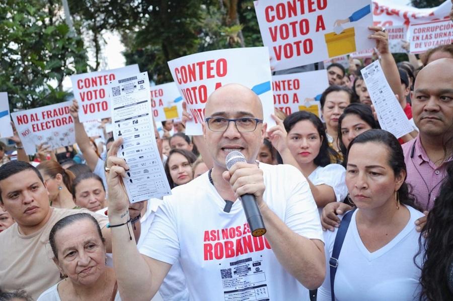 El fin de semana, Bolívar convocó un plantón frente a la sede de la institución Diego Fallón y pidió el conteo voto a voto. Sin embargo, no estuvo acompañado por los dirigentes más representativos del ‘Barretismo’ y sólo se le vio acompañado por algunos candidatos al Concejo que no lograron curul.