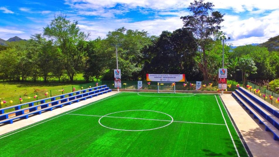 Por su parte la cancha sintética de fútbol seis, ubicada en el barrio La Cruz cuenta con pórticos con malla, cerramiento, andén e iluminación. La inversión para este escenario ascendió a los 708 millones de pesos.