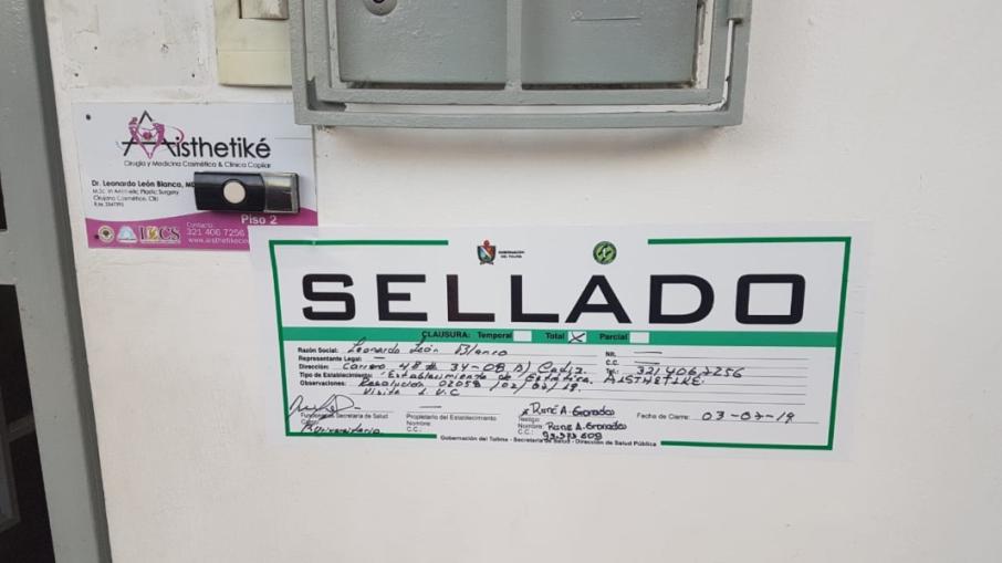 Dentro de las medidas adoptadas por el ente regulador, también se procedió al cierre de Aisthetiké establecimiento donde se ofertan servicios de cirugía y medicina cosmética y clínica capilar por parte del doctor Leonardo León Blanco el cual no se encontraba en la plataforma de registro de prestadores de salud por lo que no contaba con la acreditación como cirujano plástico.