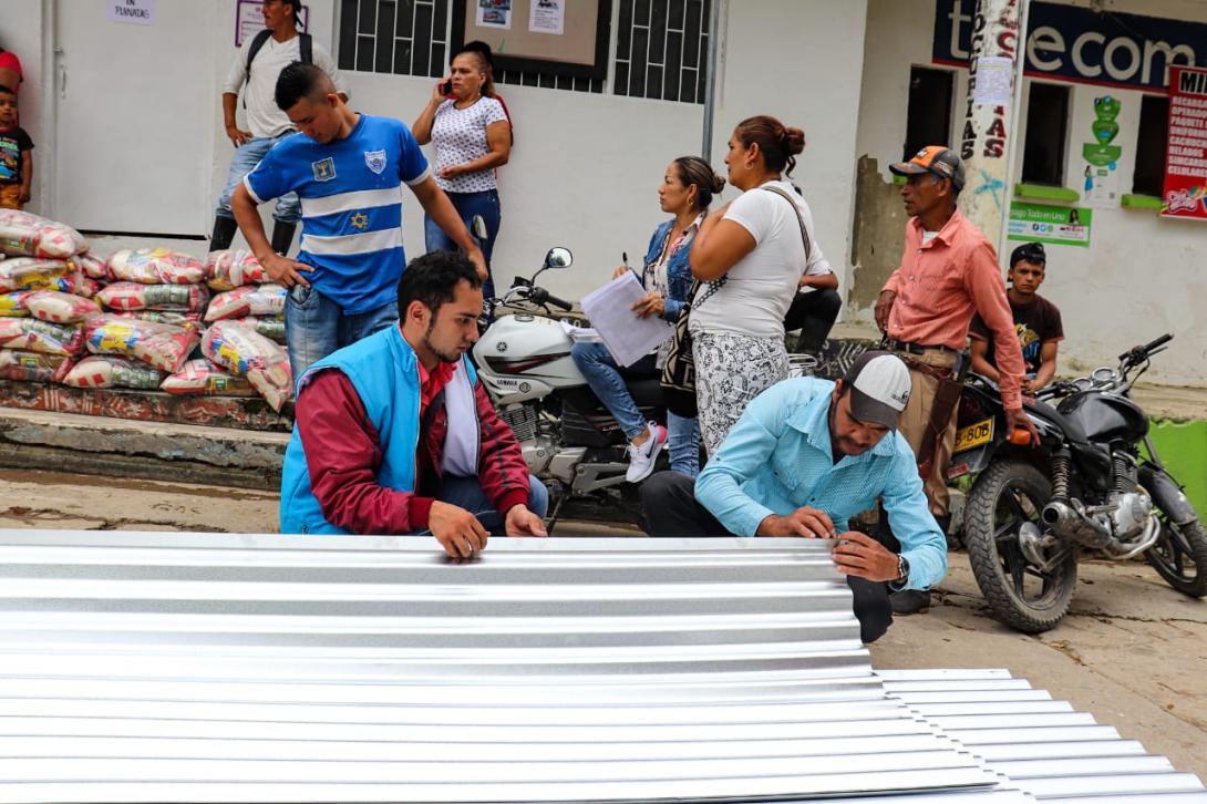 “Estamos haciendo presencia institucional por directriz de nuestro Gobernador Ricardo Orozco, entregando tejas zinc y unos mercados para los más afectados de ésta transición de menos lluvias a más lluvias” dijo la directora de Gestión del Riesgo, Andrea Mayorquín.