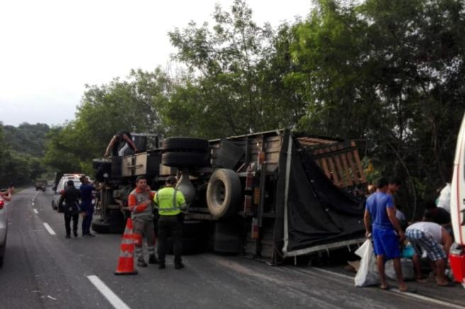 Contenido multimedia principal Camión cargado con atún se volcó en la variante de Chicoral Algunos ciudadanos aprovecharon la situación para tratar de robar el producto que quedó espaciado en la vía.