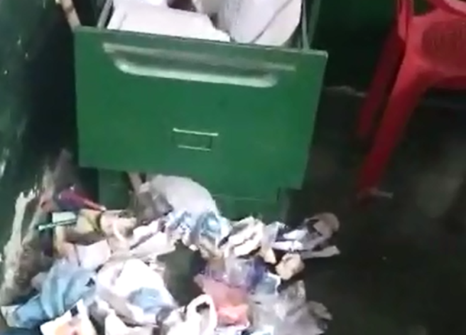 Contenido multimedia principal En video: entre basuras estarían recibiendo clases en un colegio de Ibagué Las imágenes muestran cómo hasta el escritorio de una profesora permanece 'inundado' de papeles, cartones y plásticos.