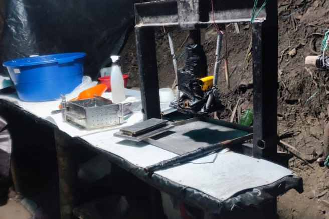 Contenido multimedia principal Destruido moderno laboratorio de droga de 'Los Pelusos' La estructura contaba con máquinas tecnificadas para el procesamiento de la hoja de coca y todo el proceso de cristalización de la cocaína.