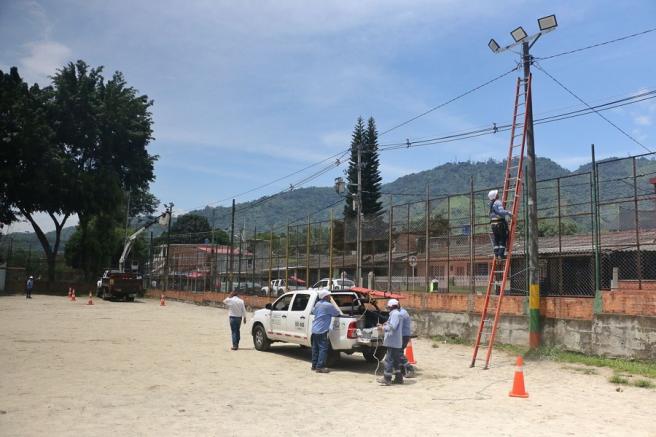Contenido multimedia principal Alcaldía de Ibagué modernizó el alumbrado público del Polideportivo del barrio Las Brisas Buscando mejorar los espacios de diversión para los niños y jóvenes, se realizó la instalación de reflectores, así como el mantenimiento de varias lum...