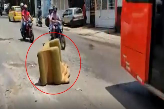 Contenido multimedia principal [Video] En Montecarlo les tocó poner un sofá viejo para advertir a conductores de los huecos Algunos habitantes señalan que se encuentran abandonados por parte de las entidades públicas.