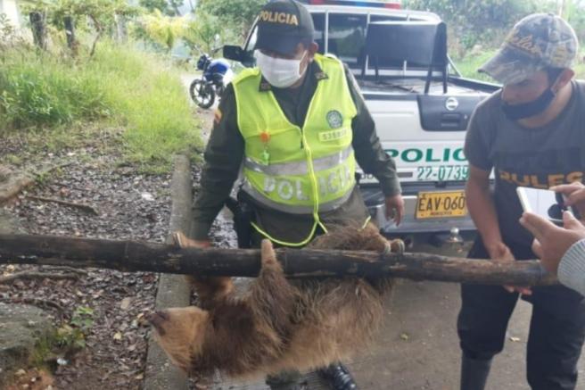 Contenido multimedia principal Rescataron a un oso perezoso que se metió a un gallinero en una finca de Palocabildo El ejemplar de fauna silvestres estaba arrinconado por unos perros, de tal manera que los funcionarios de la Policía lo capturaron y posteriormente li...
