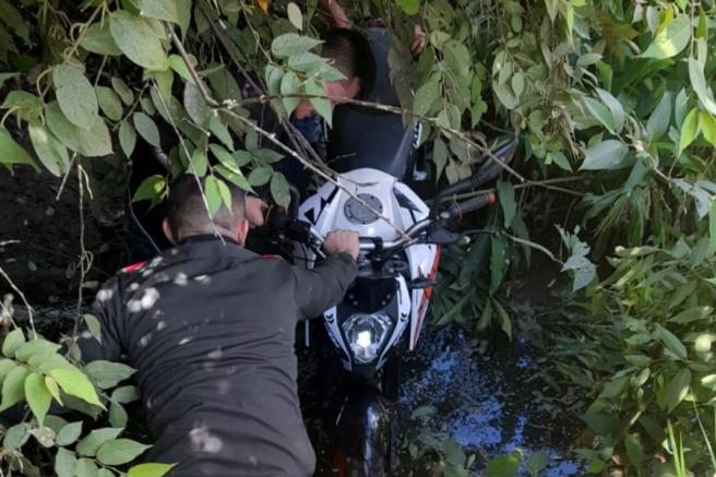 Contenido multimedia principal Policía Metropolitana recuperó una motocicleta hurtada esta mañana en Ibagué El vehículo fue abandonado por los delincuentes en una canal de riego hasta donde llegaron los policiales para sacar el vehículo.