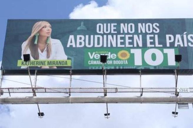 Contenido multimedia principal Polémica por vallas de Katherine Miranda por usar la expresión "abudinear" La representante del partido Alianza Verde sigue usando la expresión abudinear a pesar de la denuncia interpuesta por Karen Abudinen, ya que su apell...