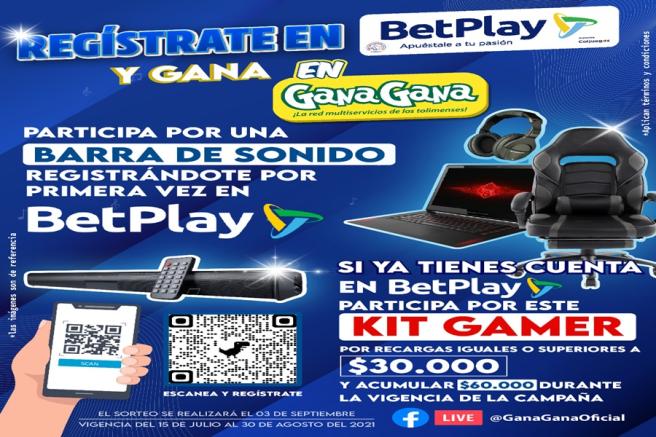 Contenido multimedia principal Conéctate al mundo de los videojuegos ganándote un Kit Gamer con BetPlay en GanaGana GanaGana sigue diseñando promocionales que tienen como propósito convertir en ganadores a todos sus clientes en el departamento del Tolima.
