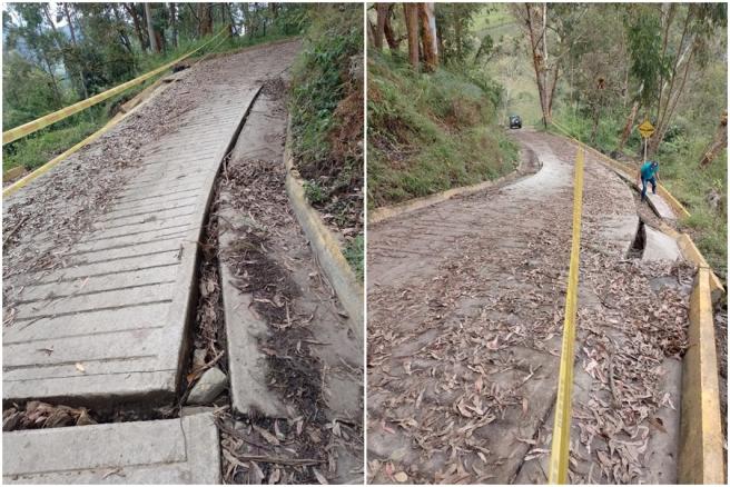 Contenido multimedia principal En video: inminente colapso de la vía que comunica Anaime con la vereda La Plata La placa huella está fracturada en varios tramos y a punto de desprenderse en zonas que colindan con abismos.