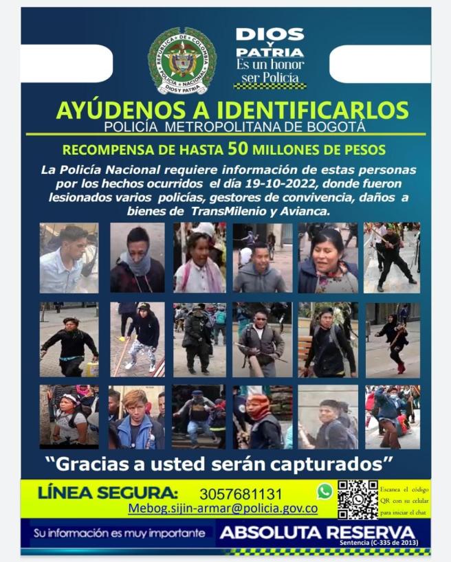 Contenido multimedia principal Video : jugosa recompensa por información que ayude a identificar a vándalos en protestas de indígenas En la imagen el cartel de los más buscados y en donde se ofrece recompensa hasta 50 millones de pesos por información.