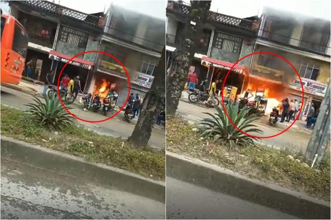 Contenido multimedia principal [Video] Un trozo de tela que se prendió habría sido la causa del incendio en taller de motos en Ibagué Los ciudadanos tuvieron que escapar rápidamente del lugar para evitar resultar heridos.