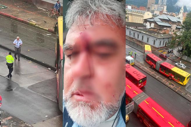 Contenido multimedia principal Video: con botella mujer ataca de manera brutal a un conductor El conductor del articulado perdió el control y se salió de la vía, debido al fuerte golpe que recibió en el rostro (foto).