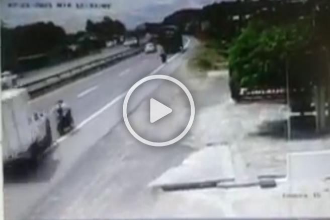Contenido multimedia principal Urgente: motociclista se salvó de milagro En el video se observa como increíblemente sale bien librado.
