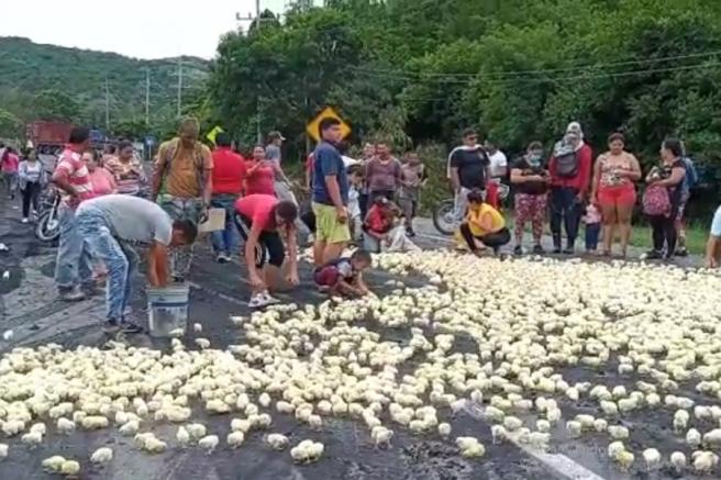 Contenido multimedia principal Video: más de 500 mil pollitos fueron arrojados en plena carretera Avícola del Valle tomó la decisión ya que debido a los bloqueos del paro nacional no fue posible llegar a tiempo a su centro de acopio.