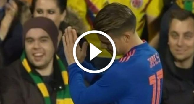 Contenido multimedia principal En video: Polémica reacción de James que termina con un fuerte balonazo en la cara de un aficionado Una vez se dio cuenta de lo sucedido, el centrocampista colombiano le pidió disculpas a la afición que disfrutaba del partido amistoso entre la 'Trico...