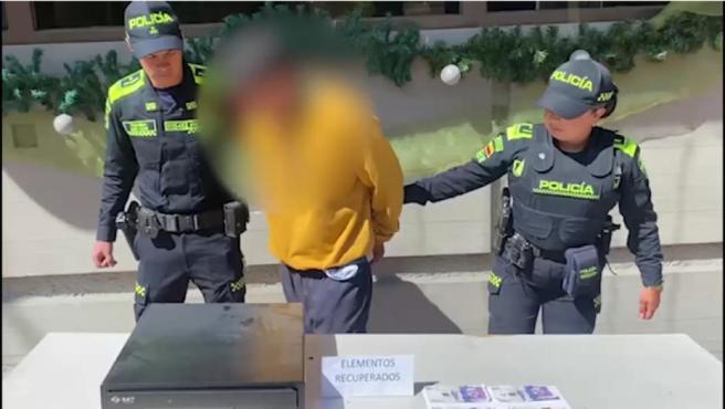 Contenido multimedia principal Video: policía capturó a sujeto con una caja registradora llena de plata Este sujeto quien fue capturado por la policía, era el dolor de cabeza de los comerciantes del norte de Bogotá.