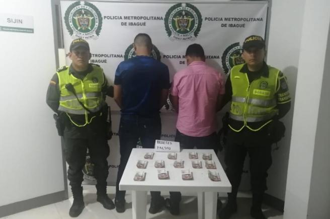 Contenido multimedia principal Policía Metropolitana capturó a dos hombres con 12 millones de pesos falsos Los sujetos viajaban en una motocicleta cuando fueron interceptados por las patrullas en la vía hacia el norte del departamento del Tolima.