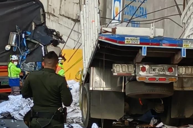Contenido multimedia principal Trágico accidente de tránsito en la vía Calarcá - Cajamarca dejó un conductor muerto Un vehículo de carga se quedó sin frenos y terminó impactando al automotor que iba adelante.