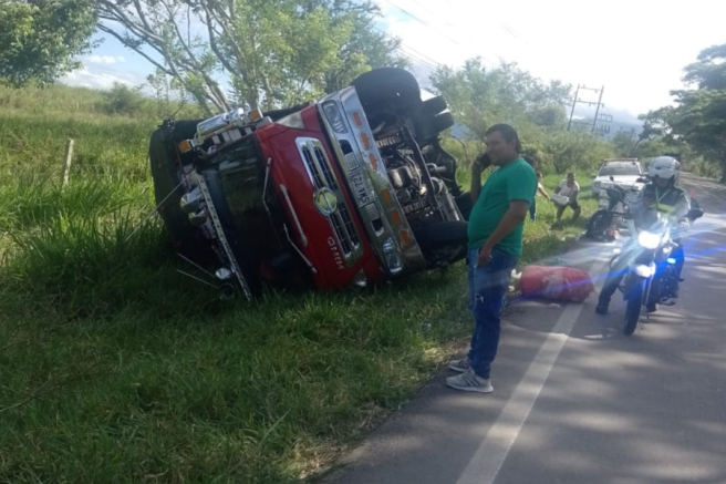 Contenido multimedia principal Vehículo de carga terminó volcado en la vía al norte del Tolima Una falla mecánica habría sido la causa del aparatoso accidente.