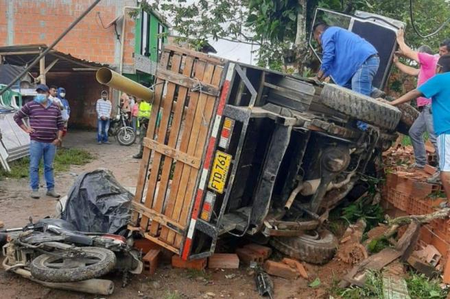 Contenido multimedia principal Carro sin frenos por poco causa una tragedia en el norte del Tolima El vehículo sin control terminó llevándose por delante al conductor de una motocicleta, quien quedó debajo de la camioneta luego que esta se volcara.