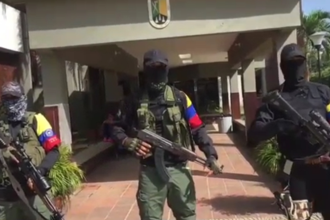 Contenido multimedia principal Estas son las nuevas imágenes de los guerrilleros de las Farc frente a la Alcaldía de Tibú Los integrantes de las fuerzas de combate urbano del grupo subversivo se ubicaron de forma desafiante frente al edificio municipal.