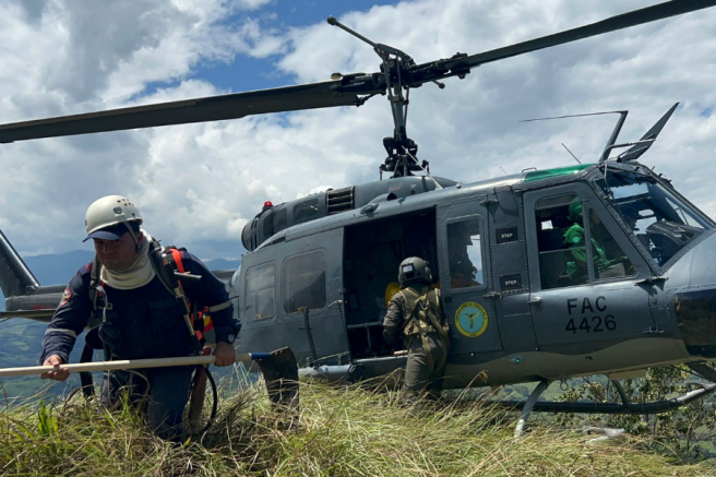 Contenido multimedia principal En video: así trabaja la Fuerza Aérea para controlar este monumental incendio forestal Con el sistema Bambi Bucket se están arrojando grandes cantidades de agua sobre los principales focos del incendio en Melgar, Cunday y Carmen de Apica...