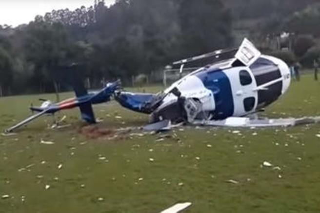 Contenido multimedia principal Video: impactante accidente de helicóptero que intentaba aterrizar en un campo de fútbol La aeronave transportaba a un congresista brasilero y tres personas más las cuales salieron ilesas.