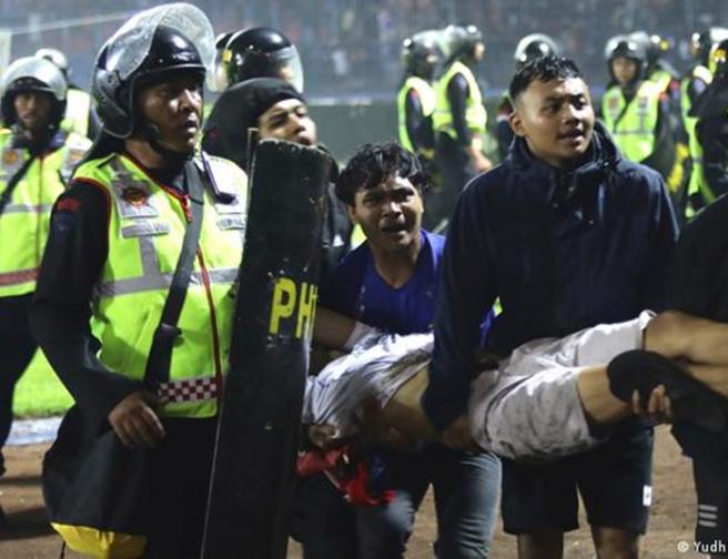 Contenido multimedia principal [Video] Cientos de personas mueren dentro de un estadio en medio de una riña masiva La Policía tuvo que 'inundar' las graderías de gases lacrimógenos pese a que había miles de hinchas que no participaban de la pelea.
