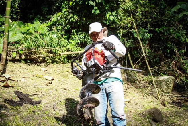 Contenido multimedia principal Cortolima agiliza procesos de restauración gracias a máquina ahoyadora Con el uso de esta herramienta disminuye considerablemente el tiempo que se demora una persona en hacer el hoyo para plantar un árbol.