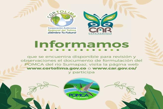 Contenido multimedia principal Avanza la formulación del Plan de Ordenación y Manejo de la Cuenca Hidrográfica del río Sumapaz Hasta el 23 de mayo de 2023 hay plazo de hacer comentarios a la primera propuesta del documento técnico del Pomca del río Sumapaz elaborado por Cortol...