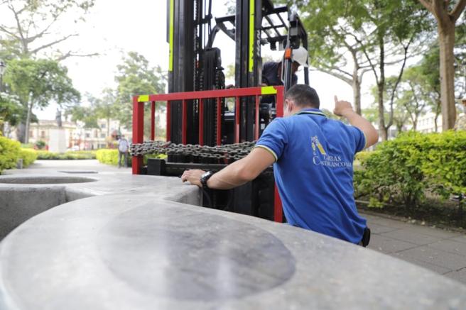 Contenido multimedia principal En imágenes: así quedó la Plaza de Bolívar tras la intervención de la Gestora Urbana El nuevo mobiliario tiene alusión a la música e iluminación propia con tecnología LED.