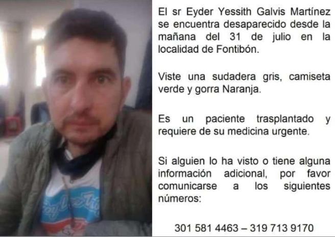 Contenido multimedia principal Cerrajero salió a comprar lo del desayuno y nunca más regresó a su casa A Eyder Yessith Galvis(foto) lo han buscado por todas partes. Lleva desaparecido hace 37 días.