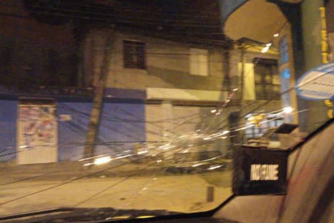 Contenido multimedia principal Vándalos arrojaron piedras a un taxi entre la Cartagena y el Refugio Una de las rocas impactó el panorámico del vehículo dejándolo completamente destruido. Ahora el conductor deberá asumir el daño.