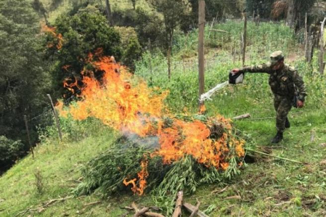 Contenido multimedia principal Tropas del Ejército erradicaron más de 300 matas del marihuana en el norte del Tolima Trabajos investigativos permitieron a las autoridades localizar el cultivo ilegal que estaba próximo a cosechar. En el lugar también fueron localizada...