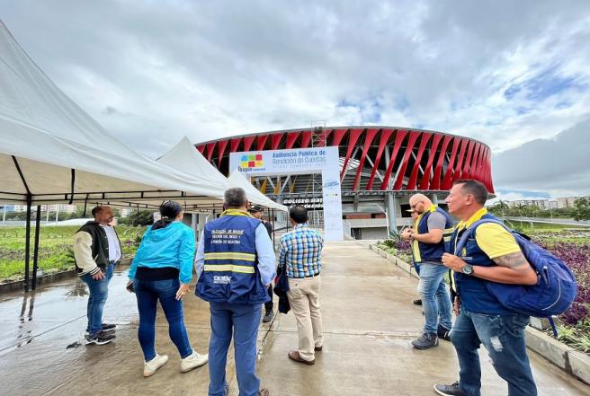 Contenido multimedia principal "El Coliseo Mayor cumple las condiciones para realizar la Rendición de Cuentas": Jéssica Salcedo La Dirección de Gestión del Riesgo, organismos de socorro y demás entidades realizaron inspección técnica a la estructura.