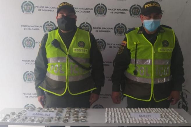 Contenido multimedia principal Sujeto prefirió abandonar la 'merca' de estupefacientes para no ser capturado El procedimiento se realizó en el barrio El Bosque parte baja, donde los uniformados adelantaban labores de requisa y solicitud de antecedentes. El ji...