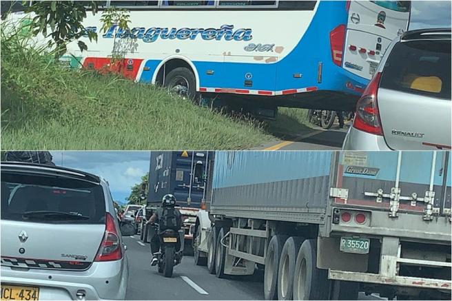 Contenido multimedia principal Monumental trancón a esta hora sobre la vía que de Ibagué conduce hacia Bogotá La situación es tan crítica que algunos buses de transporte intermunicipal han optado por atravesar los separadores.