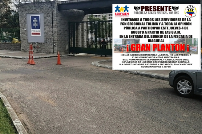 Contenido multimedia principal Se canceló el plantón en la Fiscalía por visita de Francisco Barbosa a Ibagué La protesta se iba a realizar por sindicalistas de la Fiscalía en Ibagué, pues su institución no ha avanzado en la investigación por el asesinato de u...