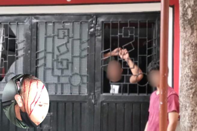 Contenido multimedia principal Sujeto le lanzó una botella a un Policía desde el balcón de su casa en el Jardín El envase de vidrio golpeó la cabeza del uniformado, quien sufrió una herida abierta. Todo se originó en medio de los controles que se adelantan para ...