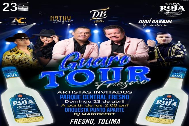 Contenido multimedia principal El 'Guaro Tour' llega a Fresno El sabor de Colombia continúa llevando su esencia, folclor y tradición de la marca insignia del departamento por todo el territorio.