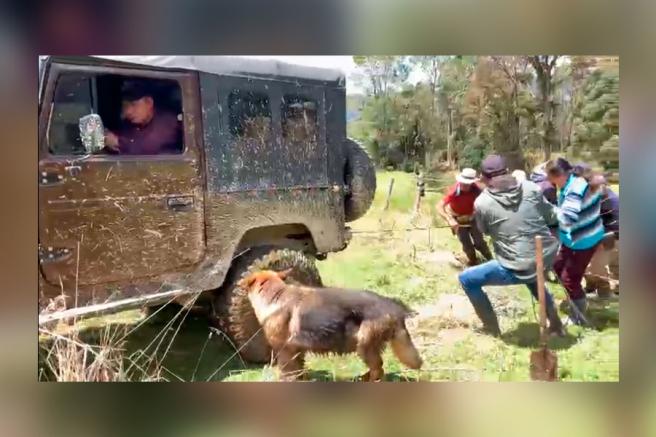Contenido multimedia principal ¡Le salvaron la vida! En video quedó el registro como sacan a una vaca del lodo El bovino cayó a un profundo hueco y quedo atascado por el fango.